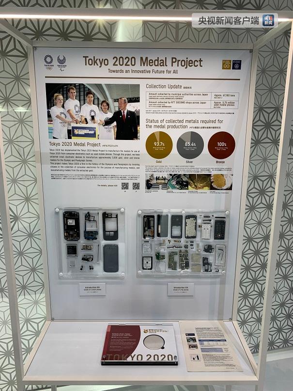 △舊手機(jī)如何變身奧運(yùn)獎牌的展板。日本全國有超過18000個回收盒被安裝在商戶、政府部門、郵局等公共區(qū)域和大型活動現(xiàn)場,市政部門回收的金屬約達(dá)67180噸。遍布日本全國的NTT DOCOMO電信公司回收了575萬臺舊手機(jī)。這個回收計劃在今年3月31日搜集到足夠的金屬,之后將由日本造幣局鍛造成奧運(yùn)獎牌。
