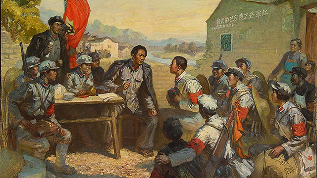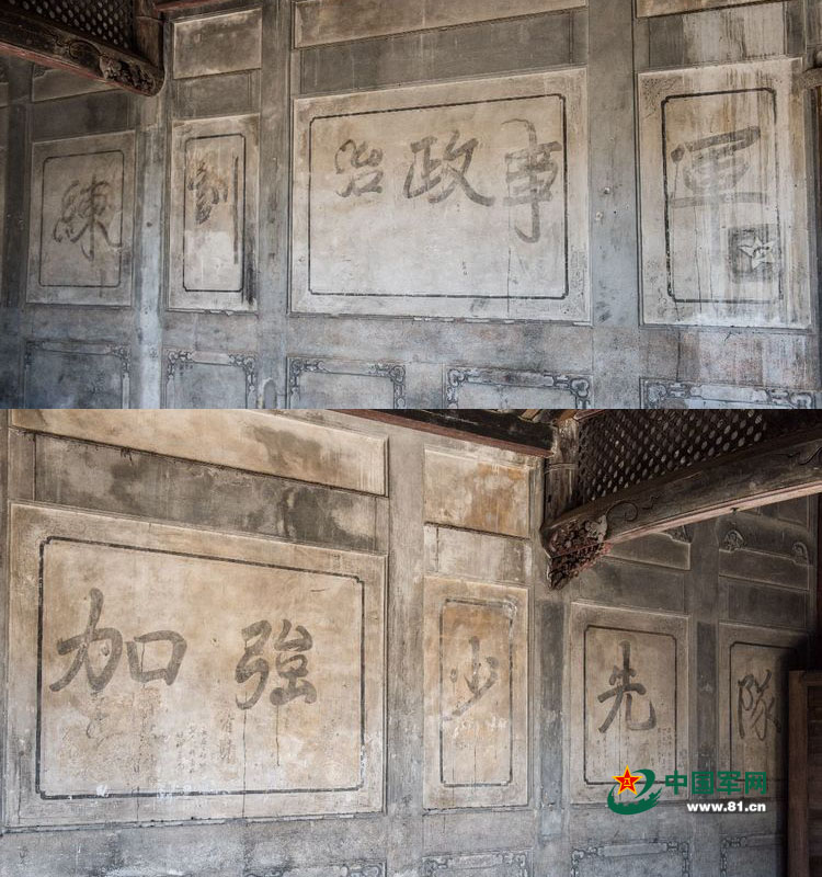 紅軍標(biāo)語“軍事政治訓(xùn)練”“加強(qiáng)少先隊(duì)”。(圖片來源:解放軍畫報(bào)資料室)