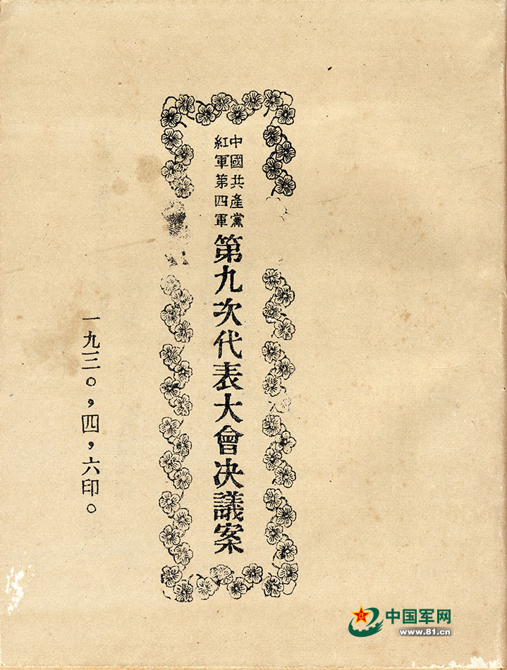 中國共產(chǎn)黨紅四軍第九次代表大會(huì)決議案(1930年4月6日版本)(圖片來源:解放軍畫報(bào)資料室)