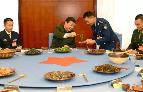 △2014年10月31日,中共中央總書記、國家主席、中央軍委主席習(xí)近平出席全軍政治工作會(huì)議。會(huì)議期間,習(xí)近平同基層會(huì)議代表共進(jìn)午餐、吃“紅軍飯”。