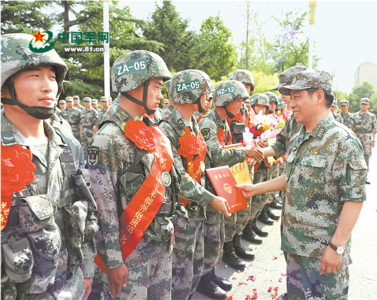 旅領(lǐng)導(dǎo)歡迎參加上級軍事比武獲獎的班長骨干凱旋。高俊偉攝