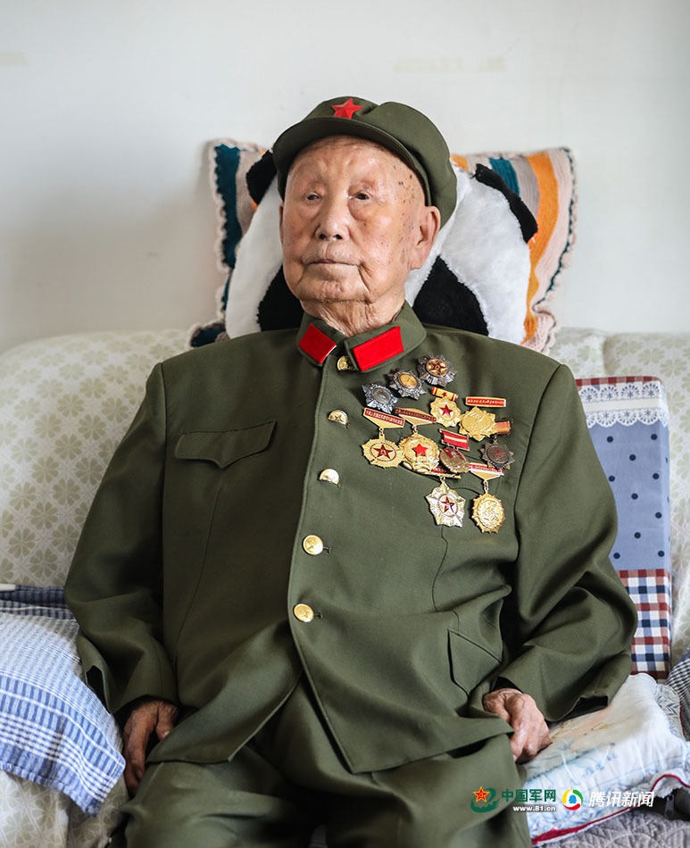 馬志選接受記者采訪時總是會穿上心愛的軍裝,胸前滿滿的軍功章甚是耀眼。中國軍網(wǎng)記者 伍行健 攝