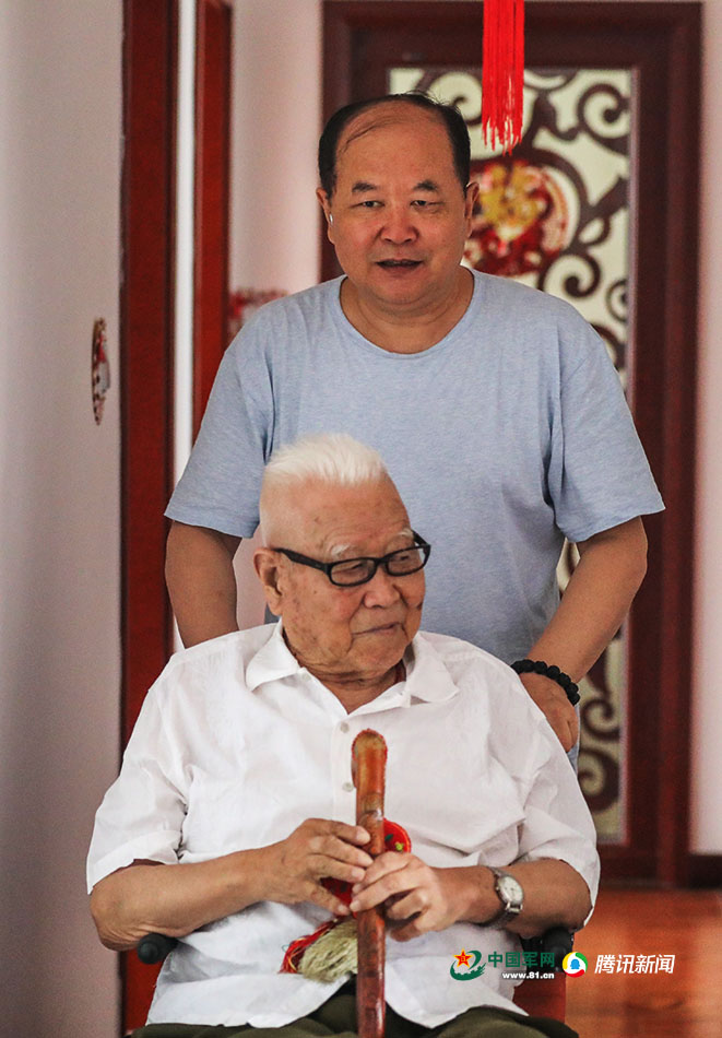 兒子李建軍推著李培英。中國軍網(wǎng)記者 伍行健 攝