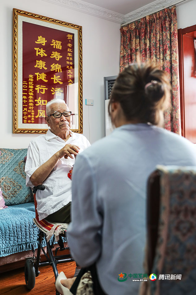 為什么會加入紅軍,加入共產(chǎn)黨?李培英說共產(chǎn)黨領導的紅軍是真正為了人民。他還記得,當時紅軍經(jīng)常吃不上菜,就往飯里撒一點鹽?!芭淼聭颜f堅決不能找陜北老百姓要糧食?!痹诶钆嘤⒀劾?,紅軍有組織有紀律,一定能帶領鄉(xiāng)親們過上好日子。老人說著說著就笑了,好像剛看到紅軍時那般欣喜。