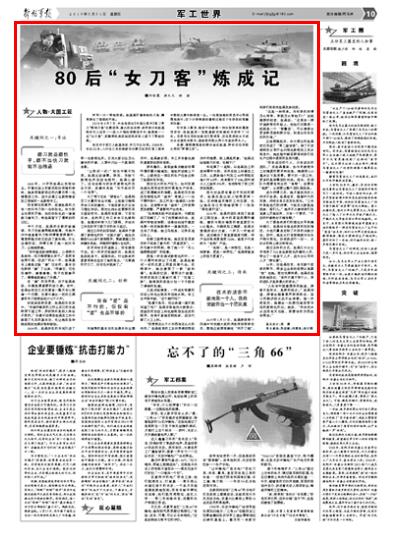 2016年4月7日,中央電視臺(tái)《中國(guó)大能手》第二季之“數(shù)控刀客”比賽現(xiàn)場(chǎng),高大的機(jī)床旁,身形嬌小的趙晶格外引人注目——進(jìn)入十強(qiáng)的參賽選手中,她是唯一一名“女刀客”,其精彩的表現(xiàn)給現(xiàn)場(chǎng)所有人留下了深刻印象。請(qǐng)關(guān)注今日《解放軍報(bào)》的報(bào)道——