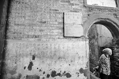 廣東南雄上朔村徐氏公祠正門墻上刻著《當紅軍歌》。新華社發(fā)