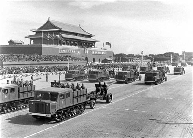 1957年國慶閱兵,中國自行生產(chǎn)的伊爾-28型噴氣式轟炸機、殲5型殲擊機首次受閱。受閱官兵共7064人,是新中國國慶閱兵受閱人數(shù)最少的一次。此外,國外來賓多也是這次閱兵的特別之處。應(yīng)邀來華訪問的50多個國家的外賓、各國駐華使節(jié)和外交官員,以及在華外國專家等觀看了閱兵式。