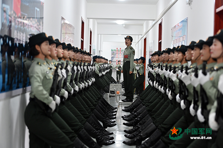 女兵隊員正進行齊步換正步訓練。熱浪在水泥跑道上升騰,呼聲在熱血胸膛中迸發(fā),她們高喊的口號響徹訓練場。