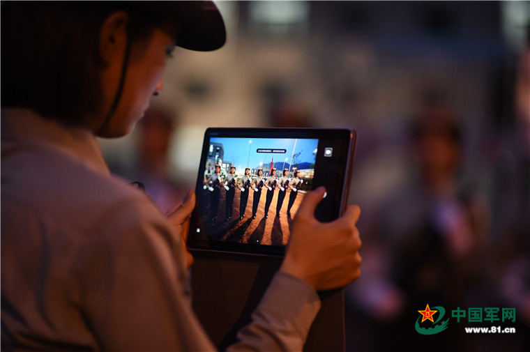 女兵隊員用平板電腦跟進拍攝訓練畫面,讓隊員們在互查互糾中共同進步。