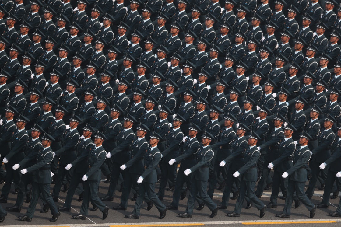 10月1日上午,慶祝中華人民共和國(guó)成立70周年大會(huì)在北京天安門(mén)廣場(chǎng)隆重舉行。這是行進(jìn)中的文職人員方隊(duì)。新華社記者 江宏景 攝