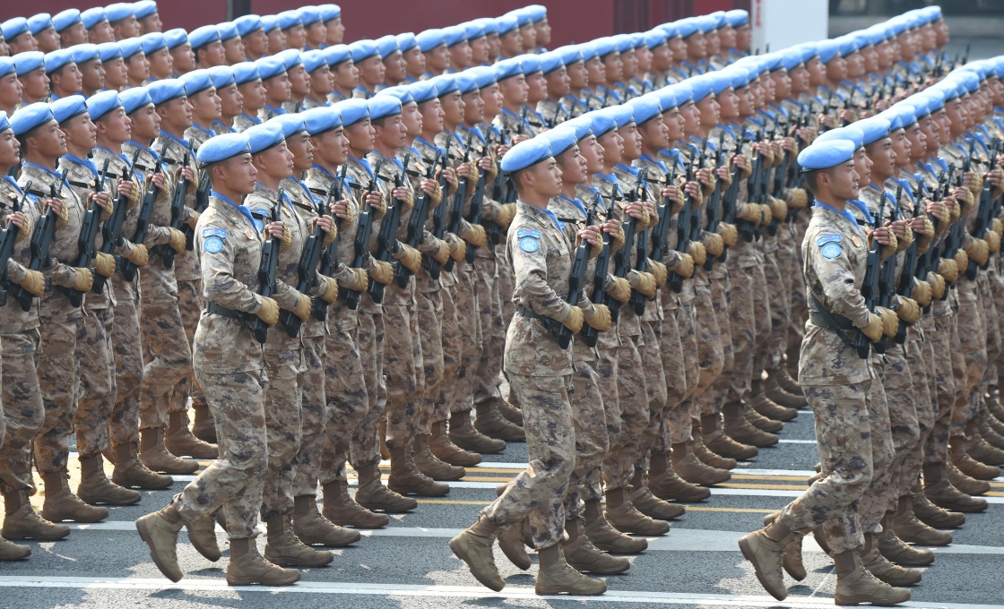 10月1日上午,慶祝中華人民共和國(guó)成立70周年大會(huì)在北京天安門(mén)廣場(chǎng)隆重舉行。這是受閱的維和部隊(duì)方隊(duì)。新華社記者 張國(guó)俊 攝