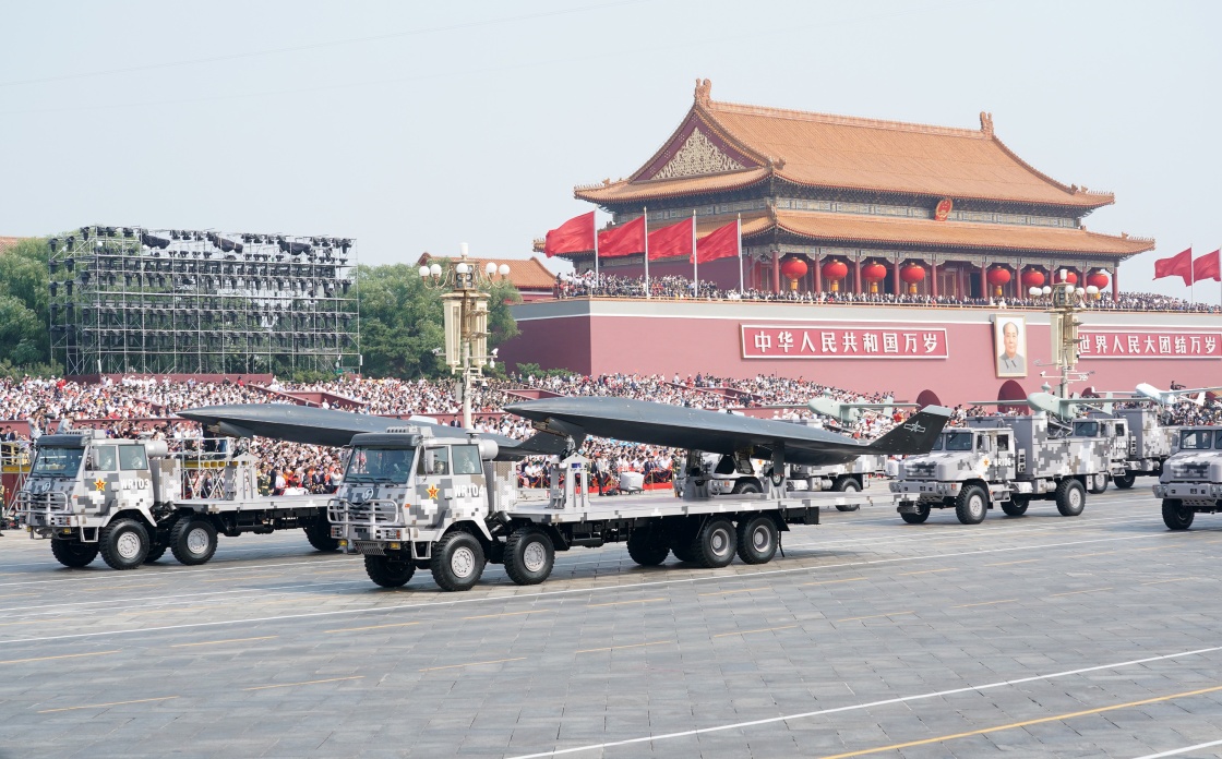 10月1日上午,慶祝中華人民共和國成立70周年大會在北京天安門廣場隆重舉行。這是無人作戰(zhàn)第1方隊接受檢閱。新華社記者 李剛 攝