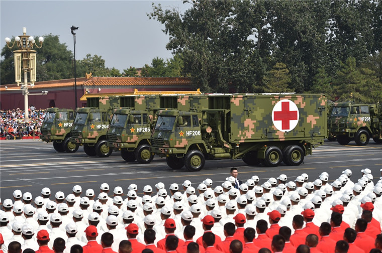 新華社北京10月1日電(朱鴻亮、曹永輝)作為我軍戰(zhàn)場(chǎng)傷員和裝備救護(hù)的代表,搶修搶救方隊(duì)由野戰(zhàn)手術(shù)方艙、裝備搶救車、拆裝修理車、裝甲搶修車和裝甲搶救車等5類裝備組成。領(lǐng)隊(duì)是第83集團(tuán)軍副政委沈竹君和第83集團(tuán)軍參謀長(zhǎng)湯辛。