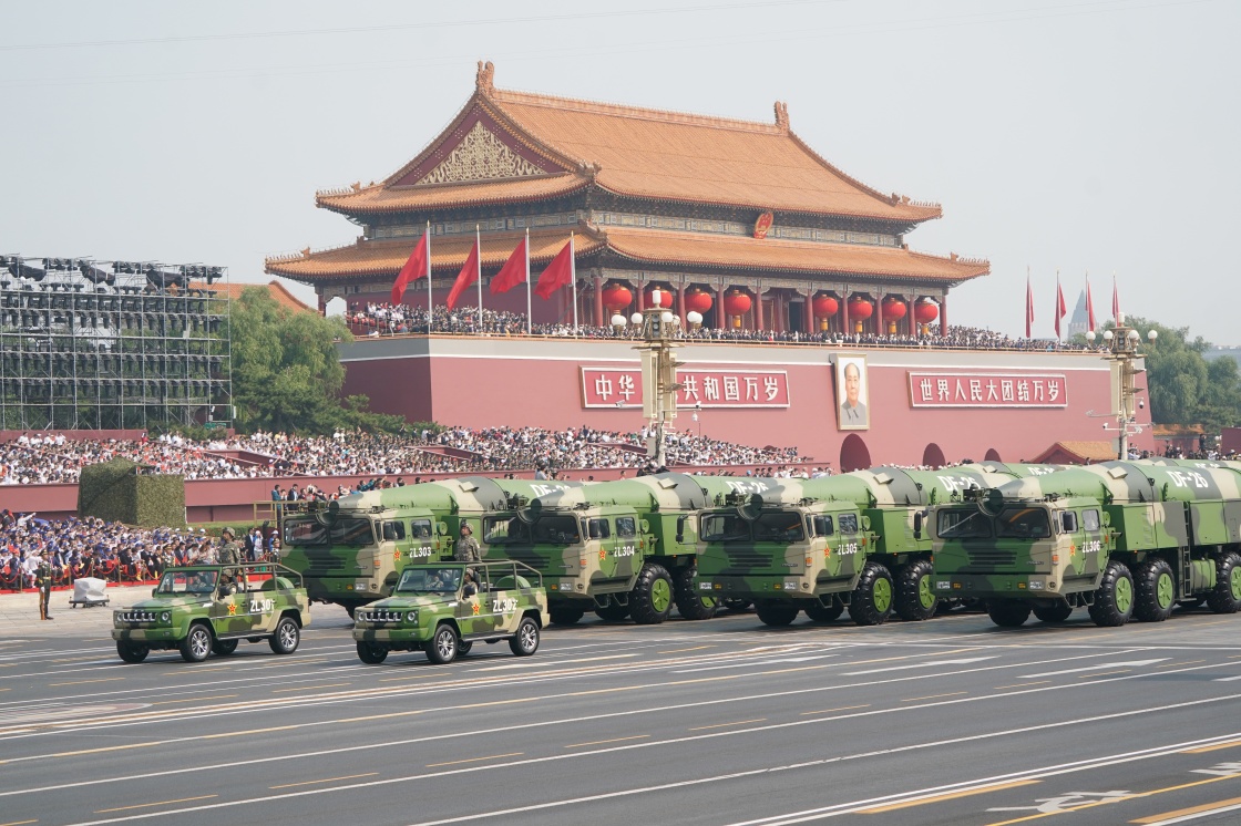 這是東風(fēng)-26核常兼?zhèn)鋵?dǎo)彈方隊(duì)。新華社記者 程敏 攝