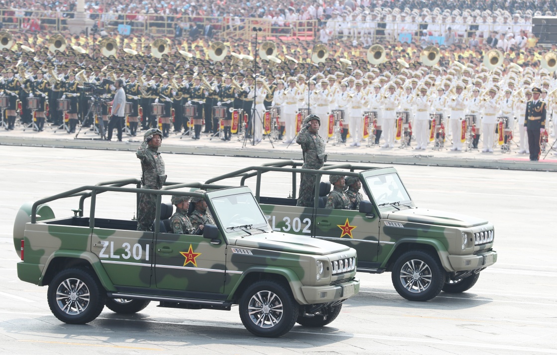 這是東風(fēng)-26核常兼?zhèn)鋵?dǎo)彈方隊(duì)接受檢閱。新華社記者 殷剛 攝