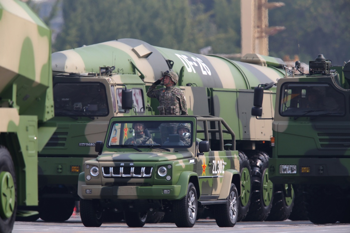 這是東風(fēng)-26核常兼?zhèn)鋵?dǎo)彈方隊(duì)。新華社記者 任瓏 攝
