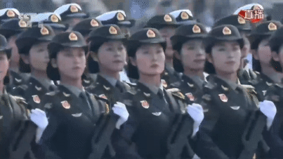女兵方隊(duì)踏著莊嚴(yán)威武的正步