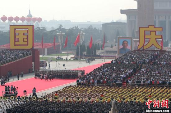 10月1日上午,慶祝中華人民共和國成立70周年大會在北京天安門廣場隆重舉行。中新社記者 盛佳鵬 攝