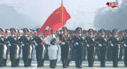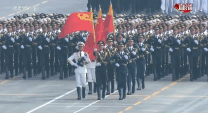 這是儀仗方隊首次同時高擎黨旗國旗軍旗經(jīng)過天安門接受檢閱,也是儀仗方隊歷次參閱規(guī)模最大的一次。