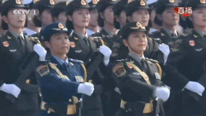 “向右看,一、二!”隨著一聲氣貫長虹的口令,女兵方隊踏著莊嚴威武的正步向前。