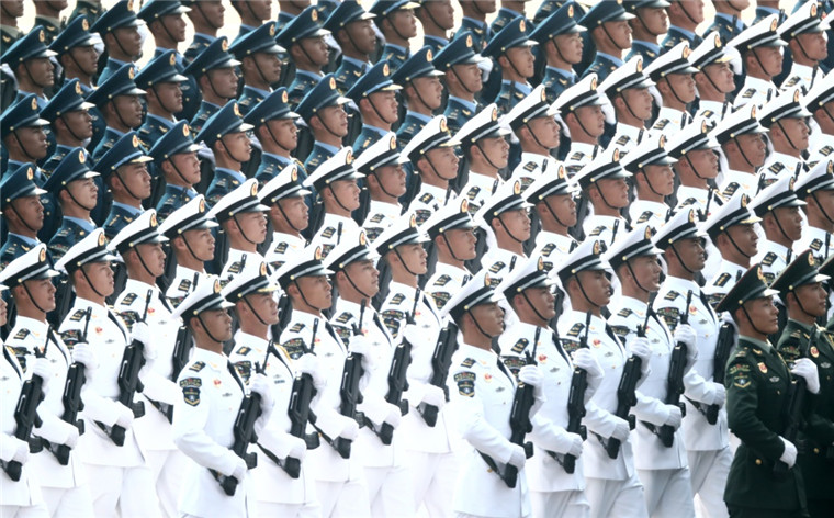 慶祝新中國成立70周年閱兵中,儀仗方隊隊員作為徒步方隊排頭接受祖國和人民檢閱。