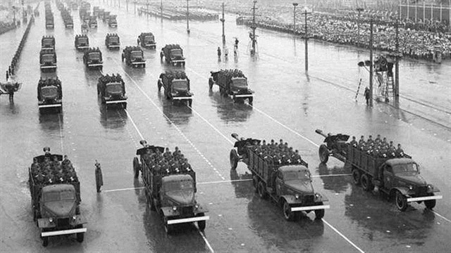 1956年國慶閱兵,是新中國國慶閱兵中唯一的一次雨中受閱。時間:1956年10月1日