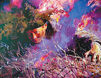 潛伏在這一片草叢里的幾十位戰(zhàn)士,親眼看到了這件事情的經(jīng)過。烈火燒在邱少云身上,就像燒在他們的心上。但是他們也和邱少云一樣,為了不暴露目標(biāo),不能去救援自己的戰(zhàn)友。他們?nèi)淌苤撵`上的痛苦,等待著戰(zhàn)斗時刻的到來。