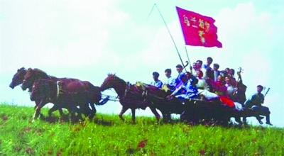 烏蘭牧騎,“紅色嫩芽”之意。1957年6月17日,內(nèi)蒙古第一支烏蘭牧騎——蘇尼特右旗烏蘭牧騎在溫都爾廟成立。第二天,舉著紅旗、甩著響鞭,9位隊(duì)員乘著馬車,向偏遠(yuǎn)的牧區(qū)出發(fā)了。兩塊幕布、三盞煤氣燈、五件樂器,一專多能的9個(gè)人從此開創(chuàng)了一個(gè)時(shí)代,培育了一種精神——迎風(fēng)雪、冒寒暑,不畏艱苦長期在戈壁、草原上為群眾演出服務(wù);有露珠、接地氣、留下的是社會(huì)主義文藝作品。烏蘭牧騎優(yōu)良的工作作風(fēng)、頑強(qiáng)的意志品質(zhì)和無私的奉獻(xiàn)精神,成為我國文藝戰(zhàn)線的一面旗幟。