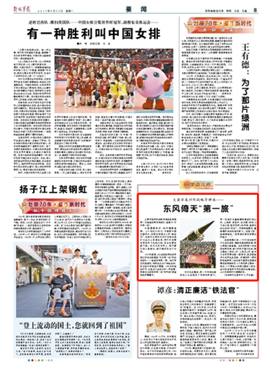 請關(guān)注今日出版的《解放軍報》的詳細報道——