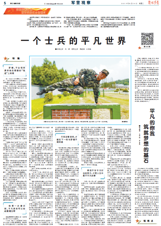 那些身處平凡崗位又不甘平凡的普通士兵,是奔流不息的強(qiáng)軍浪潮里奮進(jìn)的朵朵浪花。他們每個(gè)人的小故事,匯聚成新時(shí)代的強(qiáng)軍故事。請關(guān)注今日《解放軍報(bào)》的報(bào)道——
