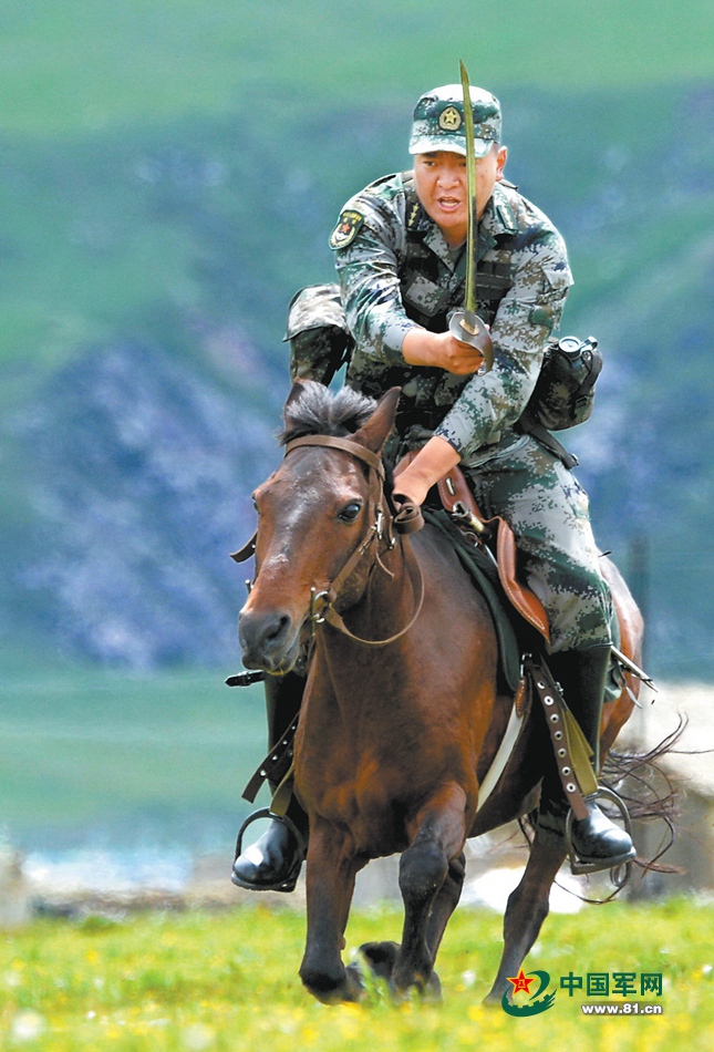 尼都塔生進行乘馬劈刺課目訓(xùn)練。