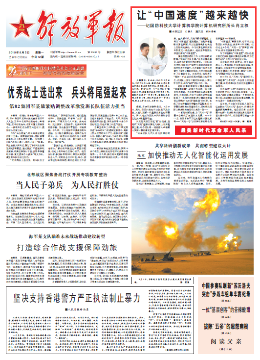 談起從事超級計算機(jī)研制,肖立權(quán)想得最多的是肩上沉甸甸的責(zé)任。作為國防科技大學(xué)計算機(jī)學(xué)院計算機(jī)研究所所長和攻關(guān)一線負(fù)責(zé)人,他必須率領(lǐng)團(tuán)隊創(chuàng)造出新的“中國速度”。請關(guān)注今日《解放軍報》的報道——