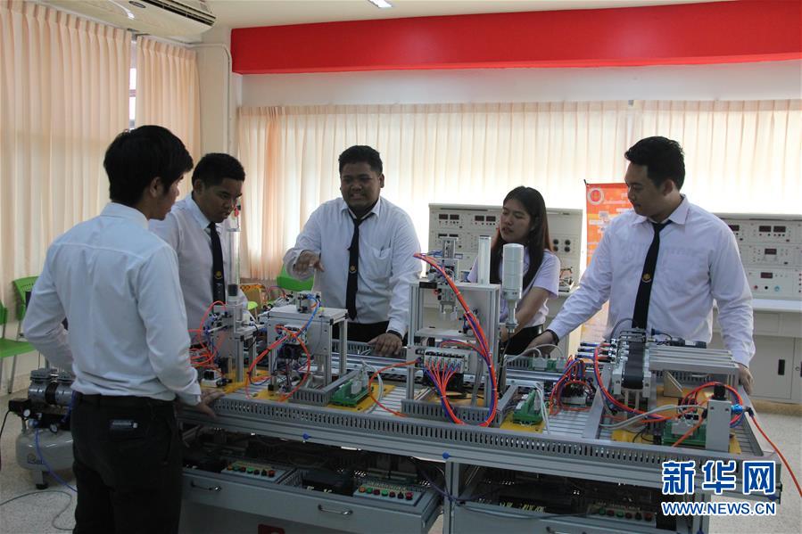 2月20日,在泰國大城技術學院內(nèi)的魯班工坊,21歲的泰國人那他武(右三)和同學們討論學習。新華社記者 楊舟 攝