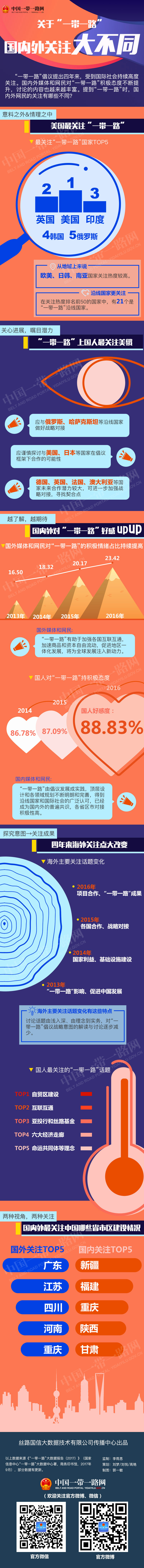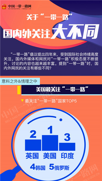 “一帶一路”倡議提出四年來(lái),受到國(guó)際社會(huì)持續(xù)高度關(guān)注。國(guó)內(nèi)外媒體和網(wǎng)民對(duì)“一帶一路”積極態(tài)度不斷提升,討論的內(nèi)容也越來(lái)越豐富。提到“一帶一路”時(shí),國(guó)內(nèi)外網(wǎng)民的關(guān)注有哪些不同?