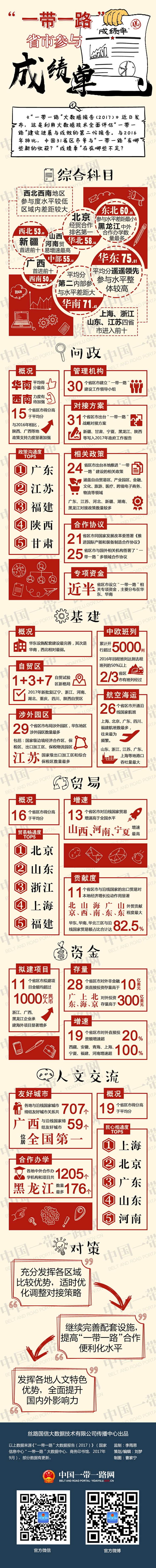 《“一帶一路”大數(shù)據(jù)報告(2017)》近日發(fā)布,這是利用大數(shù)據(jù)技術(shù)全面評估“一帶一路”建設(shè)進(jìn)展與成效的第二份報告。與2016年相比,中國31省區(qū)市參與“一帶一路”有哪些新的收獲?“成績單”存在哪些不足?