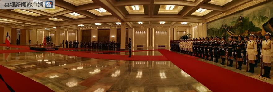北大廳內(nèi)舉行儀式歡迎智利總統(tǒng)