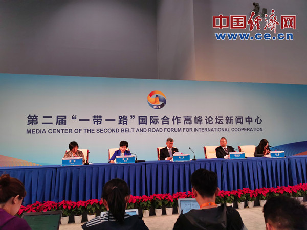 第二屆“一帶一路”國際合作高峰論壇企業(yè)家大會新聞發(fā)布會現(xiàn)場。經(jīng)濟日報-中國經(jīng)濟網(wǎng)記者 張懿攝
