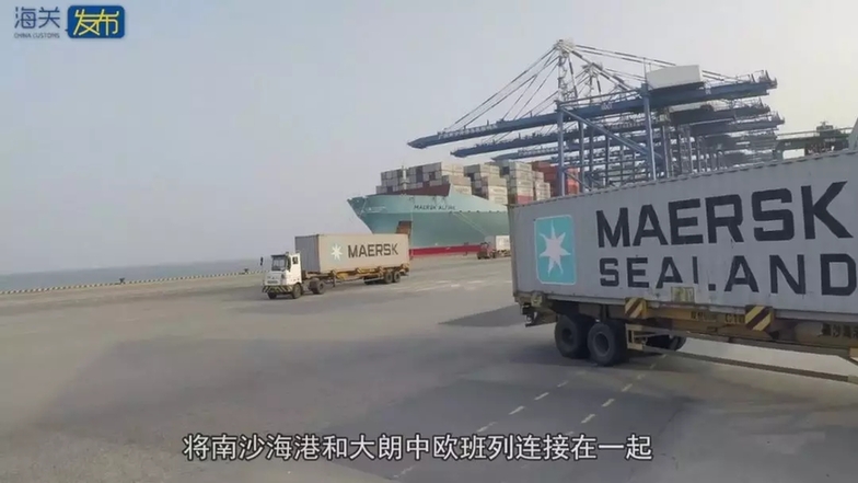 將南沙海港和大朗中歐班列連接在一起。