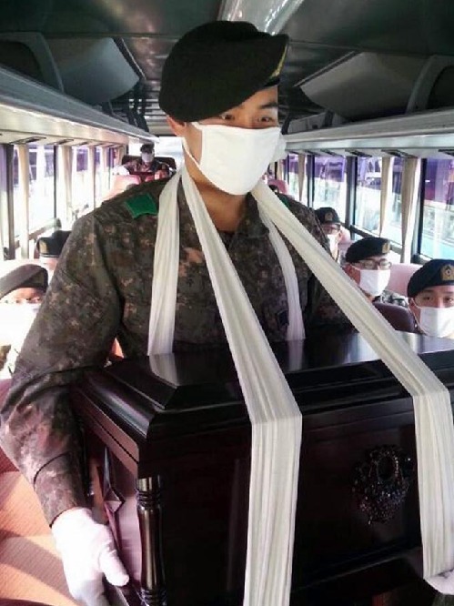 人民網(wǎng)韓國坡州3月27日電 今天早晨,437具中國人民志愿軍烈士遺骸開始從坡州起運(yùn)。韓方共準(zhǔn)備22輛車運(yùn)送,一位韓國軍人負(fù)責(zé)一個棺木。