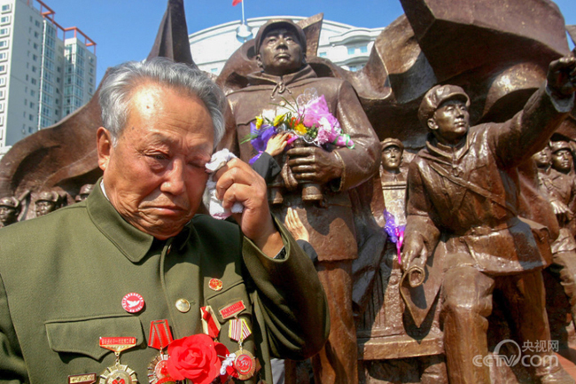 2006年9月17日,以抗美援朝為主題,以彭德懷將軍為中心人物的大型青銅雕塑《為了和平》落成儀式在鴨綠江斷橋上舉行。志愿軍老戰(zhàn)士馬玉祥,為雕塑獻花后激動得老淚縱橫。