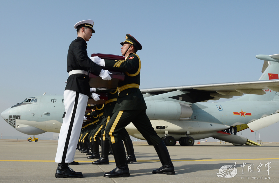 2015年3月20日,韓國仁川國際機(jī)場(chǎng),中韓雙方舉行中國人民志愿軍烈士遺骸交接儀式