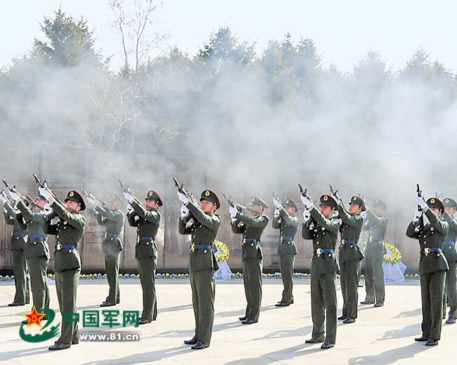 3月21日,在安葬儀式上,戰(zhàn)士鳴槍向英烈致敬。