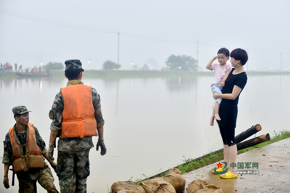 畫面中的背影來自一個叫秦猛的班長,當時,他正和戰(zhàn)友一起封堵管涌,沙袋源源不斷的從河對岸運來。險情正急,他邊喊邊干“大家快點,別停下”。一個稚嫩的聲音從身后傳來:“叔叔”。他手還是沒停,回頭瞧了眼,一個懷抱中的寶寶正微笑的看著他,右手握拳給他敬了個“走形的軍禮”,稚嫩的面龐既天真又認真。那一刻,他愣住了。時間定格在那一刻,他想對孩子說:“等我們結束,我一定回你一個標準的軍禮!”
