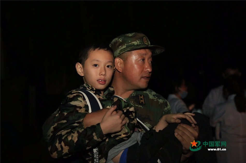 8月9日,武警九寨溝森林中隊官兵在現(xiàn)場救援。