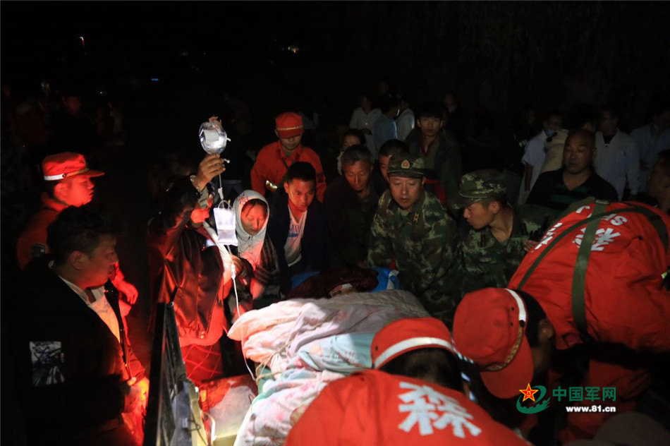 8月9日,武警九寨溝森林中隊(duì)官兵在現(xiàn)場(chǎng)救援。