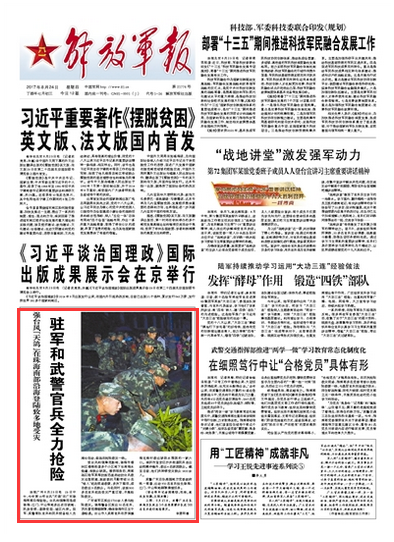 武警廣東總隊(duì)根據(jù)地方黨委政府統(tǒng)一部署,出動(dòng)950名官兵擔(dān)負(fù)珠海、江門(mén)、中山等地路障清理任務(wù)。