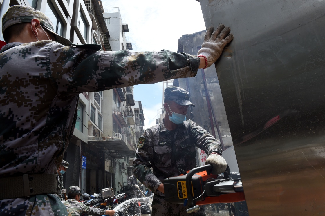 8月25日,解放軍駐澳門(mén)部隊(duì)官兵在十月初五街一帶參與“天鴿”臺(tái)風(fēng)災(zāi)后援助工作。新華社記者 盧炳輝 攝