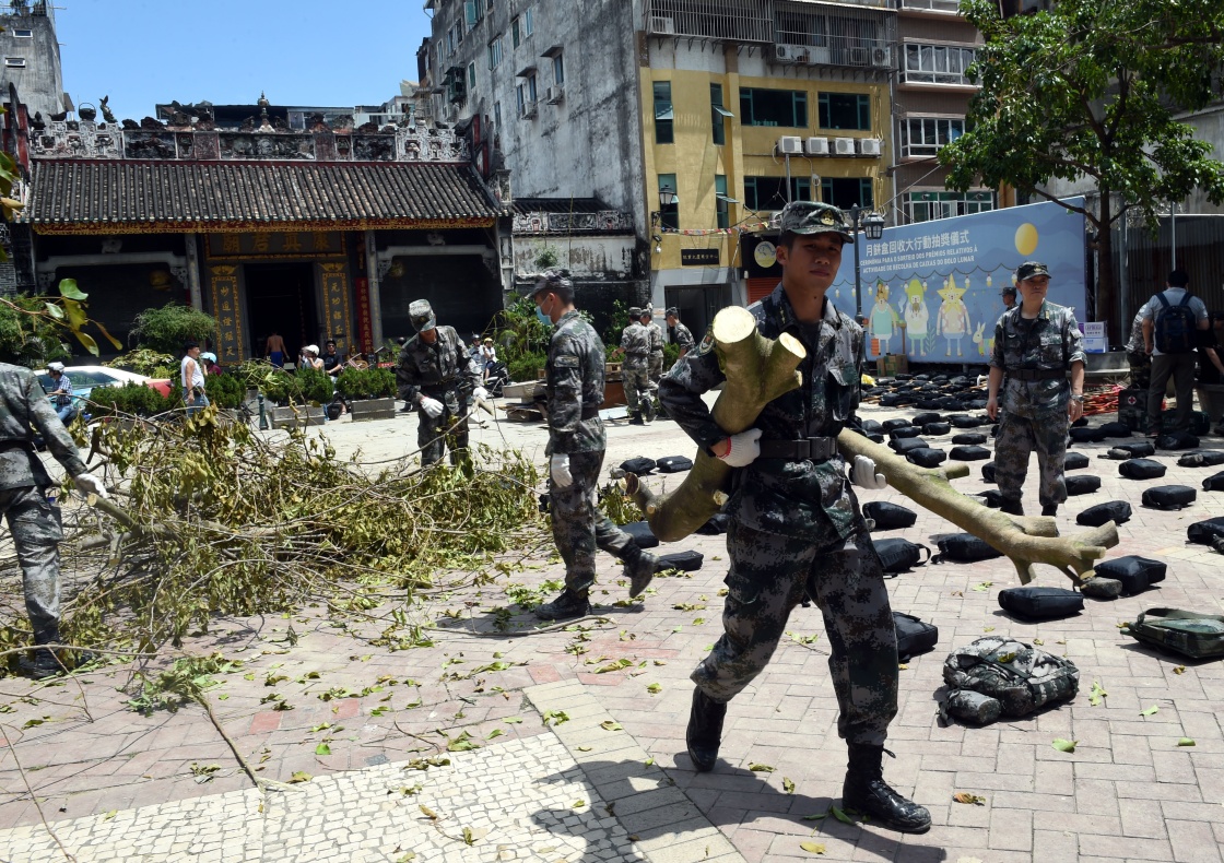 8月25日,解放軍駐澳門部隊(duì)官兵在十月初五街一帶參與“天鴿”臺(tái)風(fēng)災(zāi)后援助工作。新華社記者 盧炳輝 攝