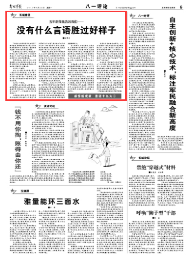 從空中第一跳、第一飛到陸地第一槍、第一炮,再到水中第一潛、第一艇……演兵場(chǎng)上,戰(zhàn)訓(xùn)一線,處處是領(lǐng)導(dǎo)干部打頭陣、做示范的身影。過去打仗,最有感召力的是“跟我上”;今天強(qiáng)軍,最具說服力的是“看我的”。無論是“跟我上”還是“看我的”,承載的都是一種精神,傳承的都是一種作風(fēng),延續(xù)的都是一種傳統(tǒng)。請(qǐng)關(guān)注今日出版的《解放軍報(bào)》評(píng)論文章: