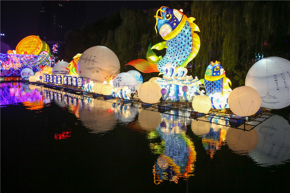 這是在“硤石燈會”燈彩藝術節(jié)上拍攝的水上彩燈(9月27日攝)。新華社記者 張鋮 攝